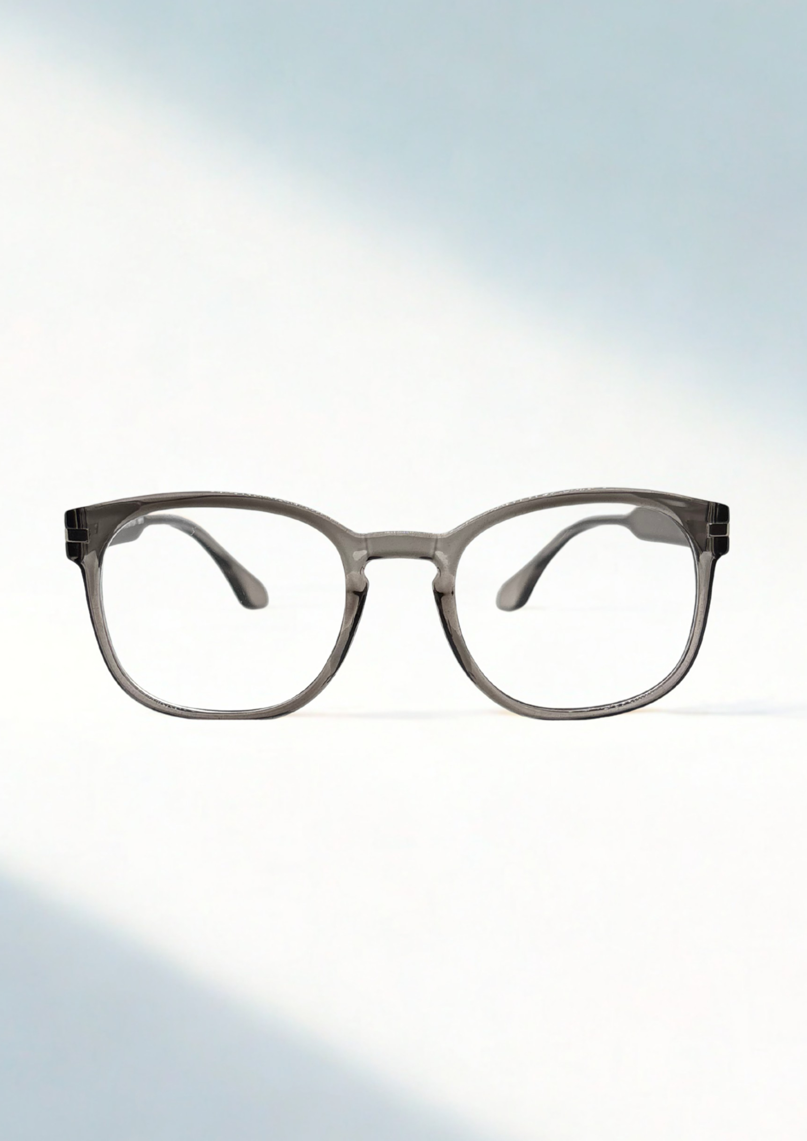 Sleek and understated, these translucent grey eyeglasses offer a timeless design with a modern feel. The soft grey acetate gives a clean, neutral look that complements all skin tones and outfits.
